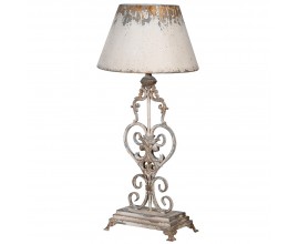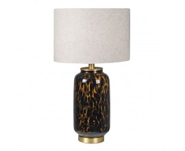 Vintage sklenená čierno hnedá stolná lampa Margaery s jemnou smaltovanou kresbou a ľanovým tienidlom ustricovej farby 52cmcm