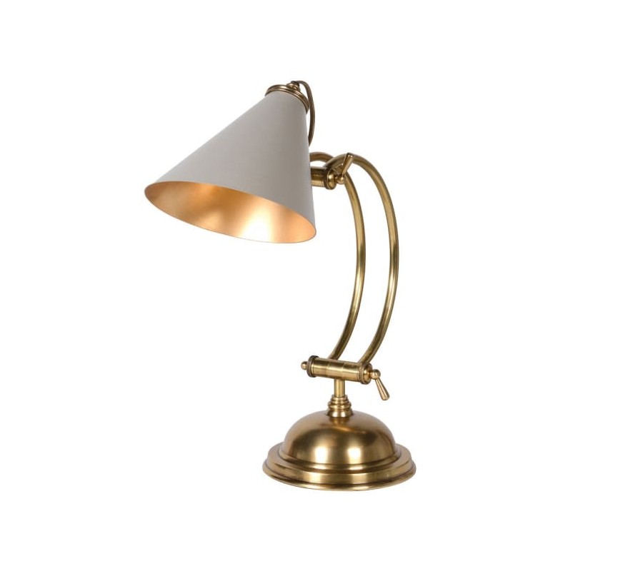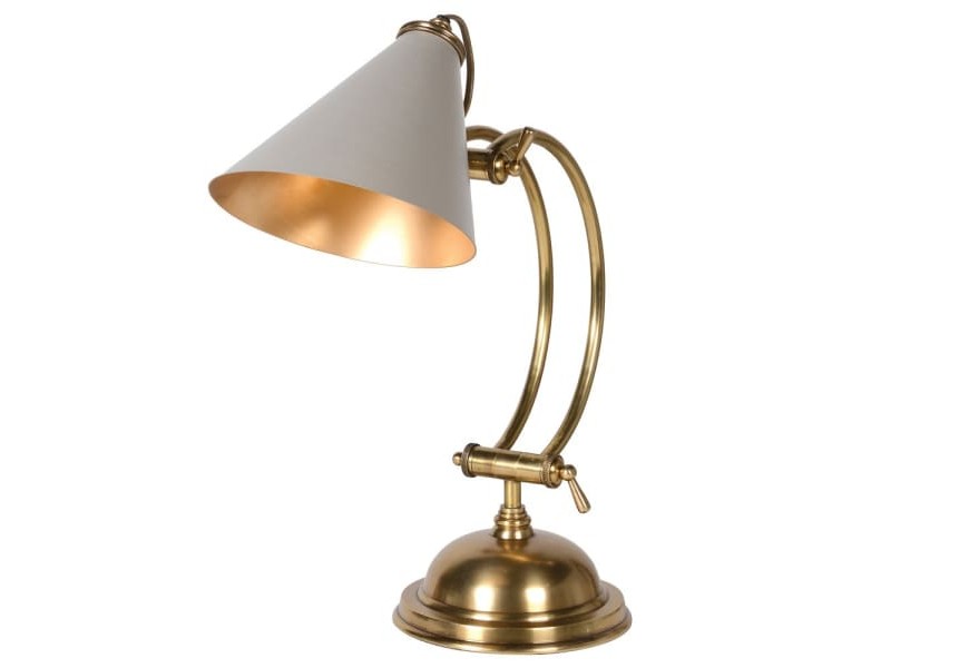 Dizajnová lampa Brassia je vďaka svojmu vintage vzhľadu dokonalým doplnkom do pracovní, obývačiek či spální ladených v tomto štýle. Disponuje kovovou mosadznou konštrukciou, ktorej lesklé prevedenie vašu miestnosť rozžiari a spolu s príjemným osvetlením k vám vnesie nádych skutočného domova. Zlatú podstavu dopĺňa elegantné sivé tienidlo dotvárajúce luxusný vzhľad. Lampa Brassia vhodne doplní napríklad masívny príručný či pracovný stolík, hodí sa však aj do tématicky ladených kaviarní, barov či hotelových izieb. Pre dokonalý vintage vzhľad je možné ju kombinovať s čalúneným kreslom, bohato zdobenými dekoráciami zlatej farby a s masívnym vyrezávaným nábytkom. Do lampy je vhodná žiarovka typu E27 mx 25W.