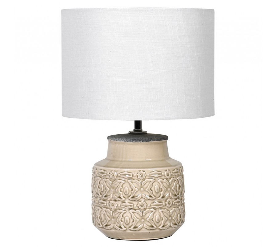 Elegancia stolnej lampy Erina vkusne doplní vintage i klasicky ladené priestory spální či obývačiek. keramická podstava sa nesie v jemnej béžovej farbe a dopĺňa ju nádherné florálne zdobenie. Biele ľanové tienidlo okrúhleho tvaru sa postará o príjemné stlmenie svetla a zároveň vkusne a elegantne dopĺňa celkový vzhľad lampy. Stolná lampa Erina vynikne na sklenenom alebo masívnom rustikálnom stolíku a spríjemní vám dlhé večery v pokoji domova. Do lampy je vhodná žiarovka typu E27 max 40W.