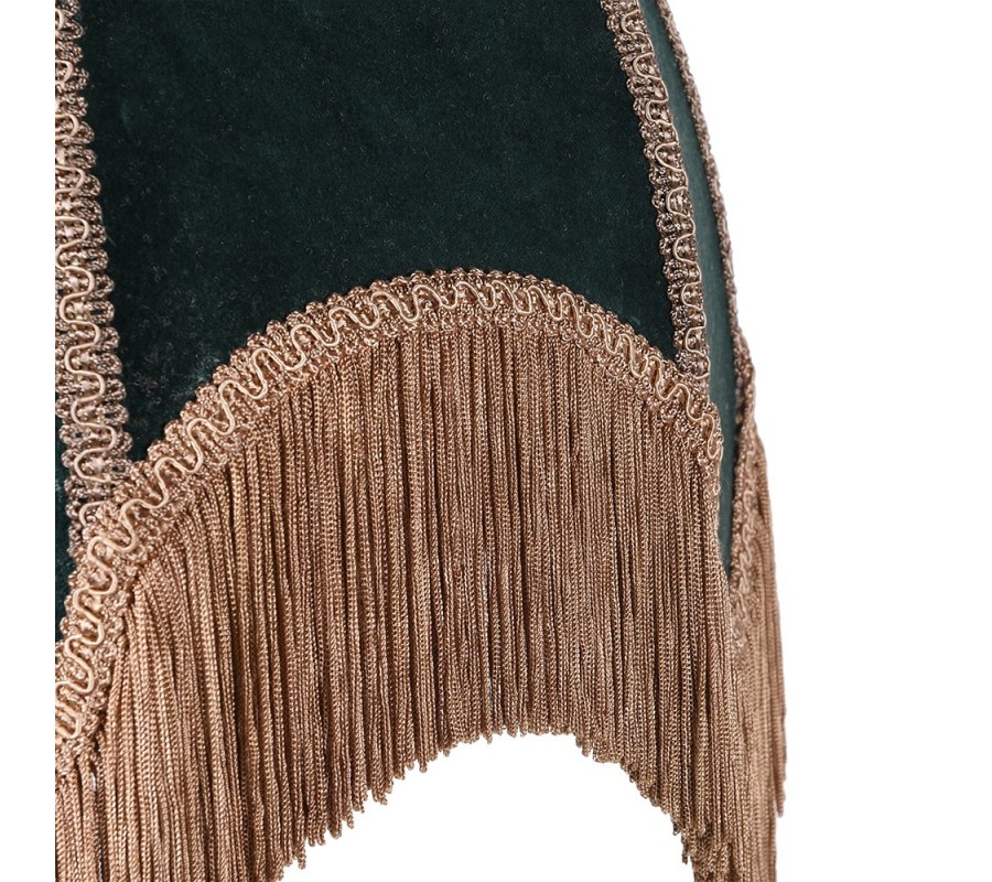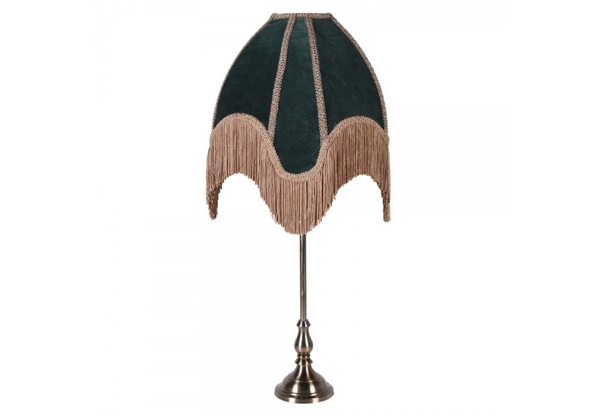 Luxusná stolová lampa Tafran v borovicovej zelenej farbe vo viktoriánsom dizajne so strapcami 75 cm