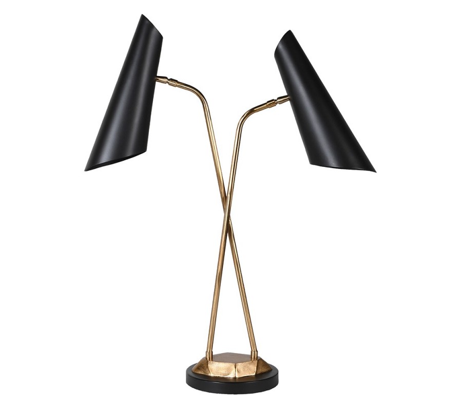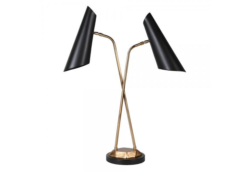 Stolná lampa Mistral vo svojom dizajne prepája luxusný nádych s čistotou a jednoduchosťou prevedenia a nádychom štýlu art deco. Dvojitá lampa je ideálnym spoločníkom do pracovní, kancelárií či študentských izieb, kde výborne poslúži pri práci, štúdiu alebo čítaní. Lampa pozostáva z kovovej konštrukcie v žiarivej zlatej farbe, ktorú dopĺňajú dve čierne tienidlá lievikovitého tvaru. Čierno-zlatá farebná kombinácia pôsobí luxusným dojmom a vkusne doladí glamour či art deco ladené priestory. Lampa Mistral vynikne na sklenenom, kovovom či čiernom masívnom stolíku. Spojenie praktickej i estetickej funkcie z nej robí vynikajúceho spoločníka do každého moderného interiéru!
