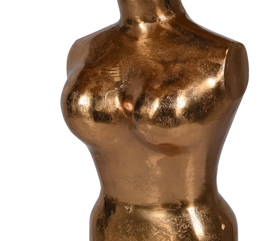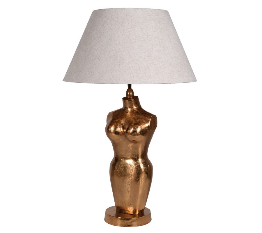 Vintage dizajnová stolná lampa Venus so zlatou podstavou v tvare ženského torza a s bielym tienidlom 80cm
