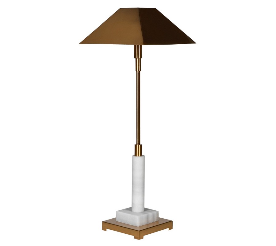 Art deco stolná lampa Medelin zo zlatého kovu a bieleho mramoru 89cm