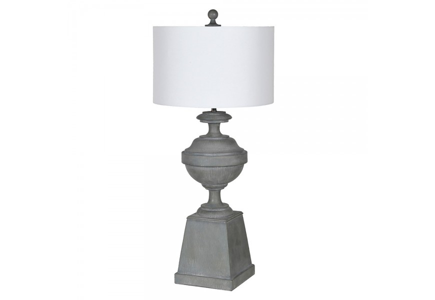 Dizajnová vintage stolná lampa Gaia so sivou vyrezávanou podstavou so starožitným efektom popraskanej farby 76 cm