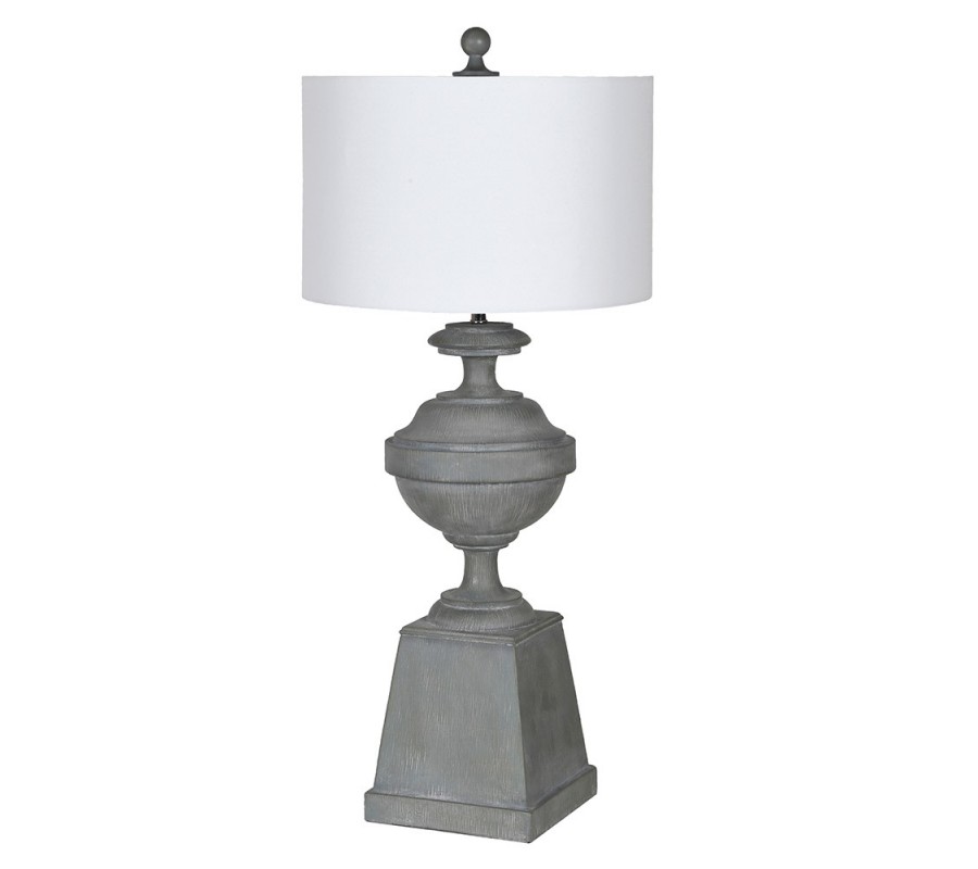 Podstava je vyrobená z umelej živice a pokrýva ju sivý náter s efektom zámerného zostarnutia. Vizuál vymytej a popraskanej farby výborne korešponduje s klasickou siluetou a prináša do dizajnu štýlový vintage nádych.