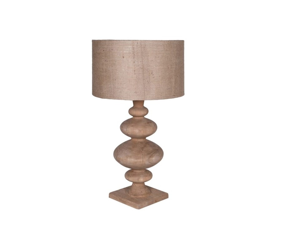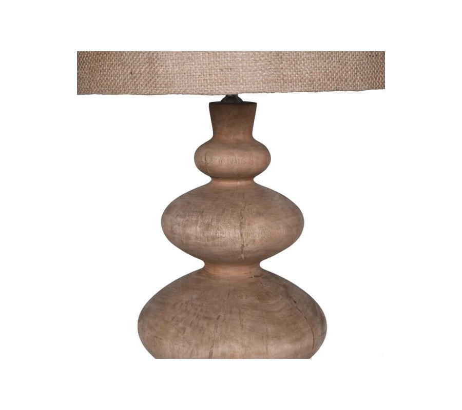 Stolná lampa Jute je elegantným a prírodne ladeným doplnkom do interiéru. Jej základ je vyrobený z mangového dreva, ktoré sa vyznačuje teplým hnedým tónom a jemnou textúrou prírodného dreva. Tvar lampy je originálny, pozostáva z geometrických zaoblených prvkov usporiadaných do vertikálnej osi, čím pripomína dekoratívne vyrezávanie sochárskych diel. Podstava je jednoduchá, štvorcová, poskytuje stabilitu a harmonicky dopĺňa zvyšok dizajnu.