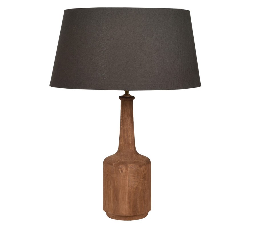 Vidiecka masívna oválna stolná lampa Petris z mangového hnedého dreva s tmavo sivým bavleným kužeľovým tienidlom 78 cm