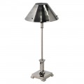 Vintage industriálna vysoká stolná lampa Uden z kovu v striebornej farbe s kovovým tienidlom v tvare zrezaného kužeľa 60 cm