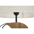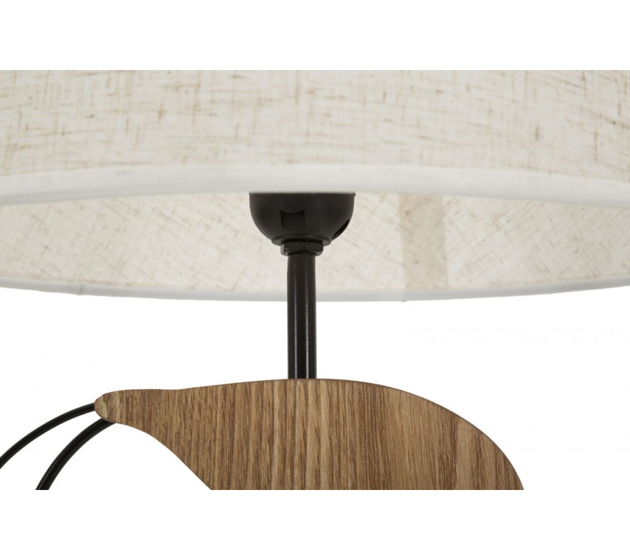 Vrchnú časť lampy tvorí kónické béžové látkové tienidlo, ktoré rovnomerne rozptyľuje svetlo a vytvára príjemnú atmosféru. Jemné prírodné odtiene kontrastujú s výraznými kovovými prvkami, čo dodáva lampe harmonický vzhľad vhodný do moderných aj industriálnych interiérov.