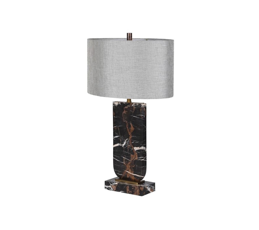 Glamour mramorová stolná lampa Astrida s čiernym podstavcom a sivým oválnym tienidlom 70 cm