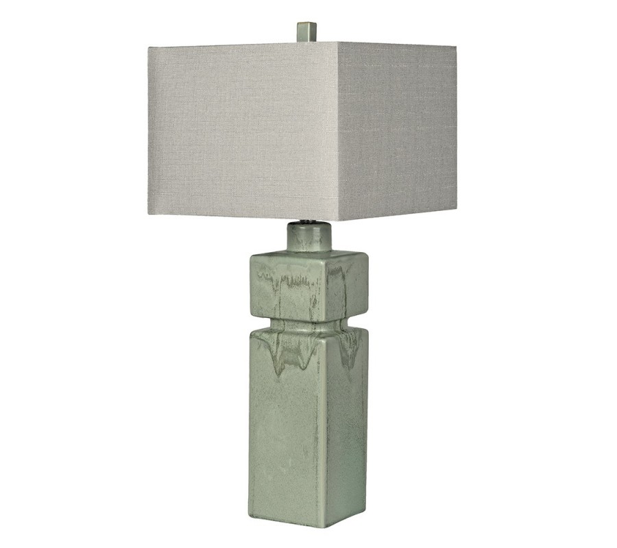 Moderná keramická stolná lampa Zhejiang s hranatou nohou so zelenou seladónovou glazúrou a béžovým tienidlom 81 cm
