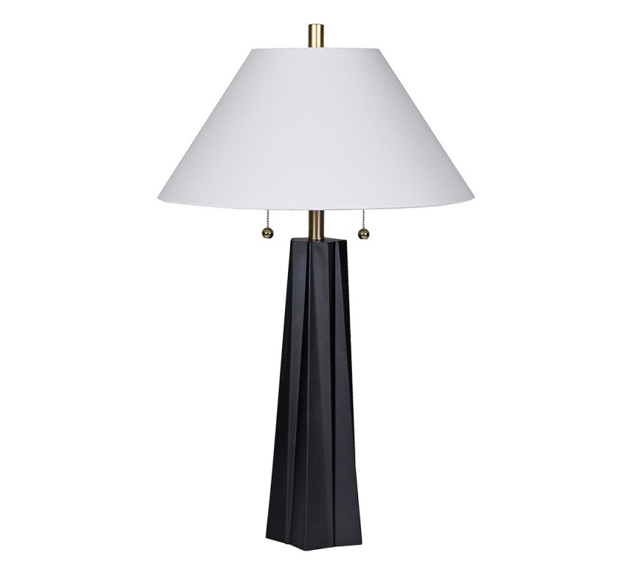 Stolná lampa Villara spája avantgardný moderný dizajn s dotykom elegancie glamour štýlu. Kombinácia čiernej, bielej a zlatej farby je nadčasová a zároveň umožňuje zaradenie do širokého spektra interiérov.