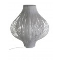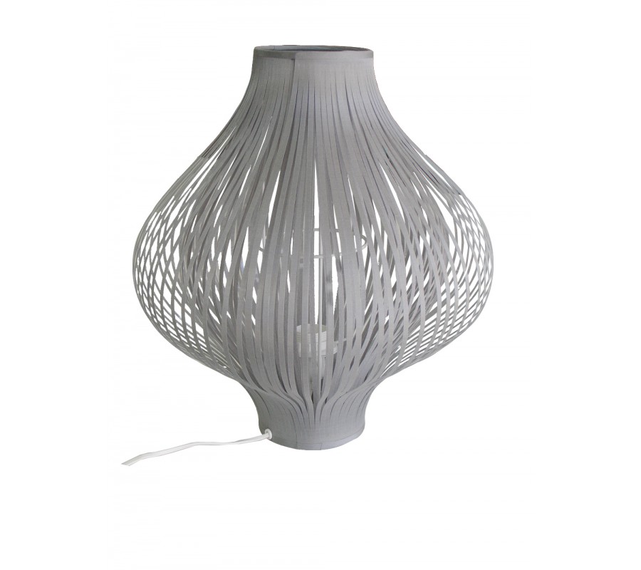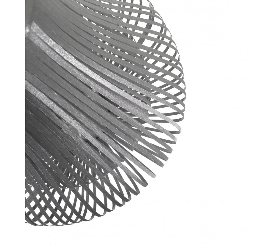 Lampa má bielu konštrukciu zhotovenú z pevného plastu. Rovako biely je aj prívodný kábel s dĺžkou 180 cm. V tvare tienidla dominujú výrazné krivky a jeho silueta má cibuľovitý tvar. Je zložené z tenkých textilných pásov v lesklej sivej farbe, ktoré pri svojom zakrivení pôsobia dynamickým dojmom. Medzery medzi jednotlivými časťami textílie tvoria moderný lineárny vzor. Do lampy je potrebná žiarovka typu E27, ktorá nie je súčasťou balenia.