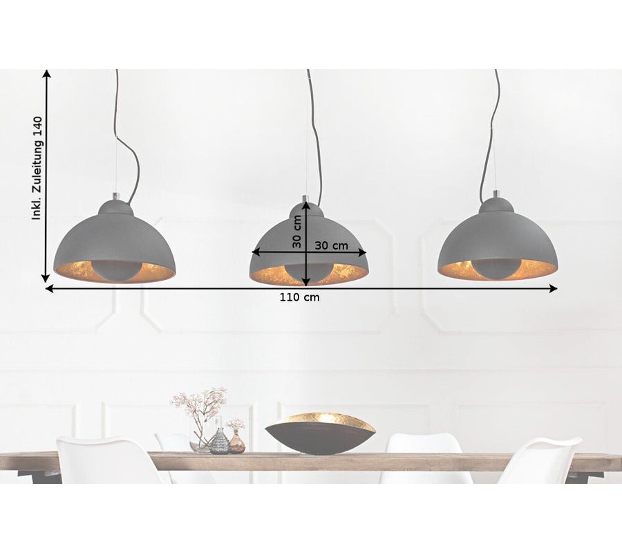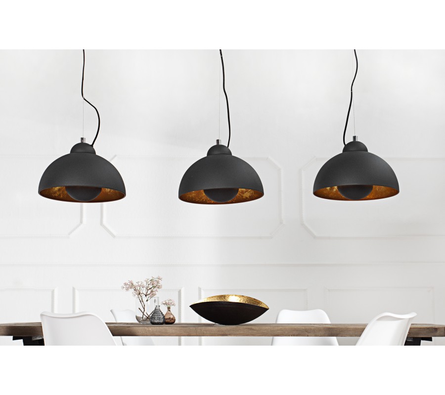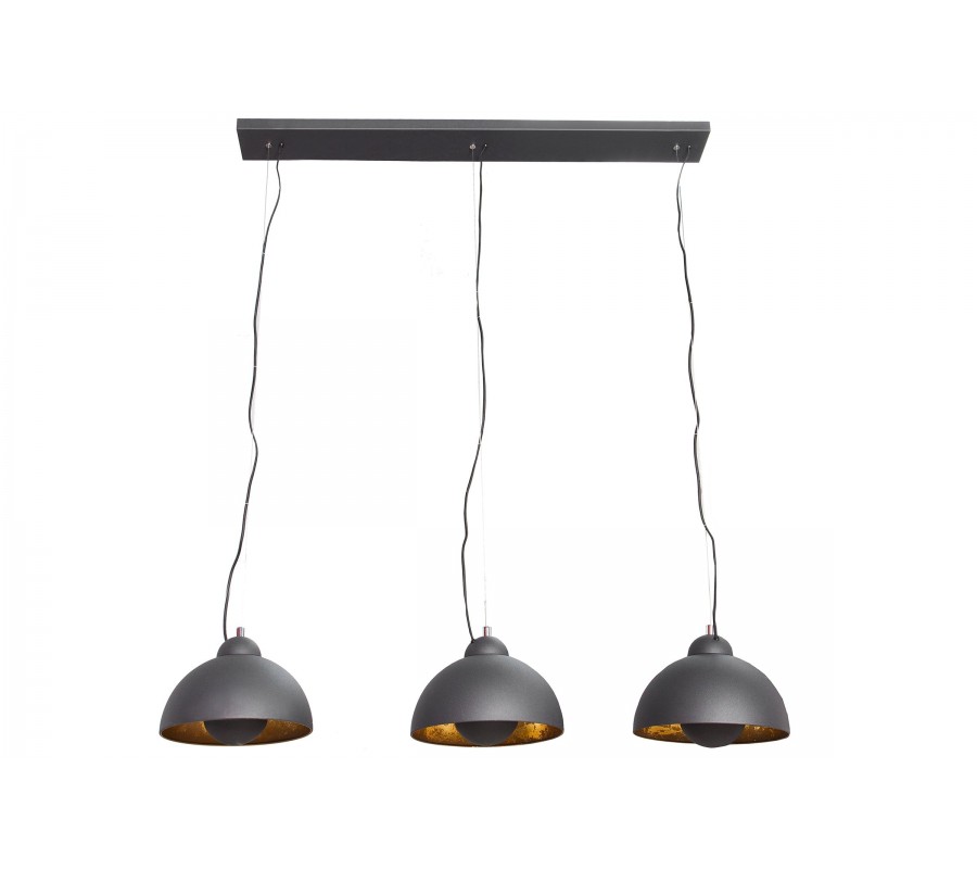 Industriálna čierna závesná lampa Raval s tromi okrúhlymi tienidlami s obdĺžnikovou krytinou so zlatými detailmi 140 cm
