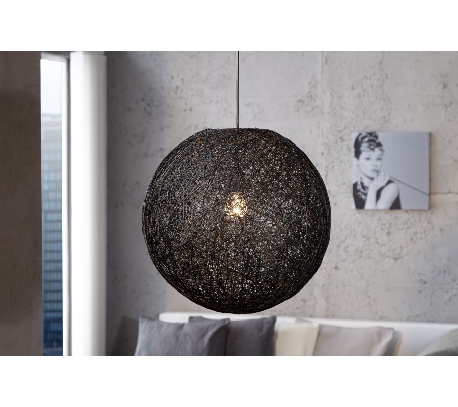 Štýlové moderné okrúhle závesné svietidlo Cocoon v čiernej farbe z banánových vlákien 35 cm