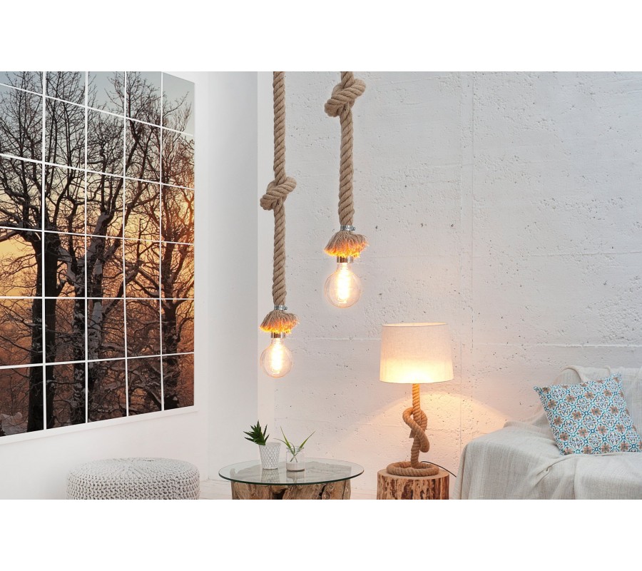 Štýlová závesná lampa Marinero z abakátových vlákien (banánovník) je elegantný voľbou osvetlenie do obydlia dobrodruhov. Lampa zaručene navodí dobrodružnú atmosféru do každého priestoru. Maximálny výkon žiarovky činí 60W alebo E27. Lano je dlhé 150cm a je možné uzliť ho do rôznych podôb. Priemer lana činí 10cm. Energetická trieda A++ až E Dodává sa bež žiarovky.