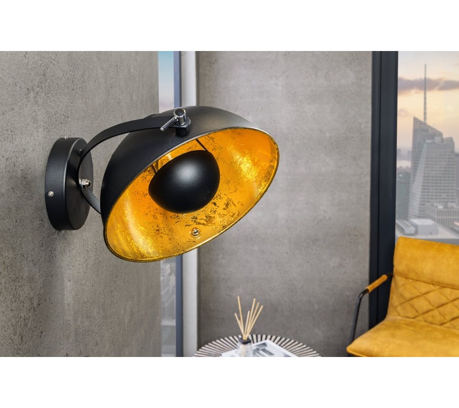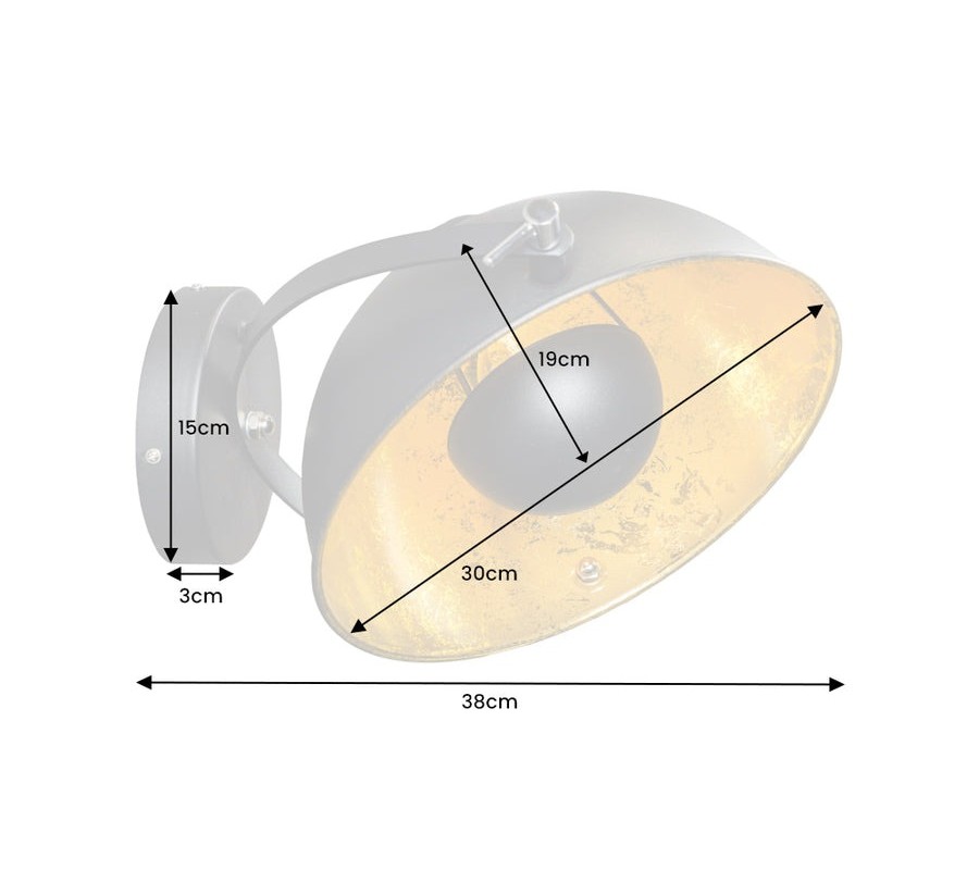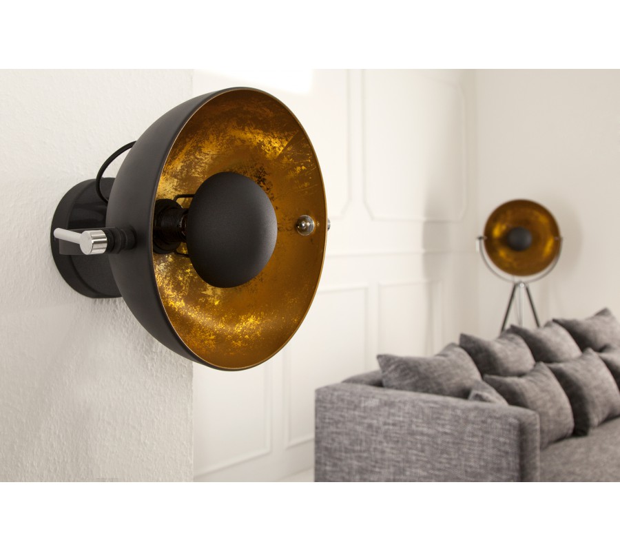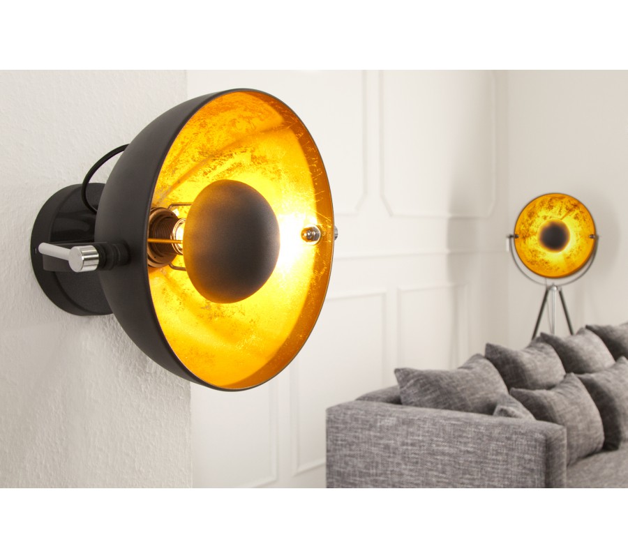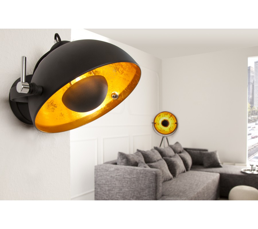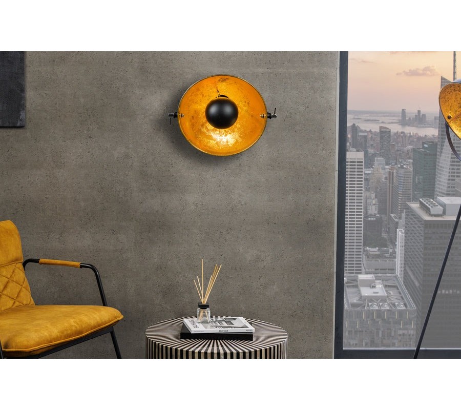 Štýlové nástenné svietidlo Studio je prevedené v originálnej eloegantnej čierno-zlatej farbe. Rozmery: 40cm x 33cm x 25cm (ŠxVxH) Nástenné svietidlo Studio je vyrobené z kvalitného hliníka a nerezovej ocele. Žiarovka: E27, max 60W. Táto lampa má objímky pre žiarovky energetickej triedy A++ až E. Žiarovky nie su súčasťou dodávky.