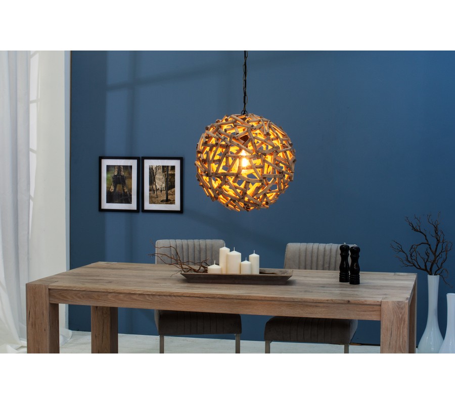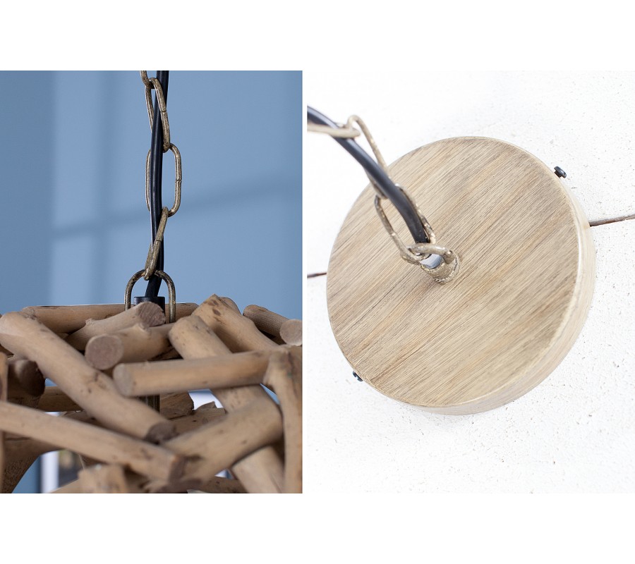 Štýlové závesné svietidlo Pure Nature je vyrobené z kúskov neopracovaného dreva. Kedže sa jedná o ručnú prácu sú možné mierne odchýlky vo farbe alebo veľkosti.