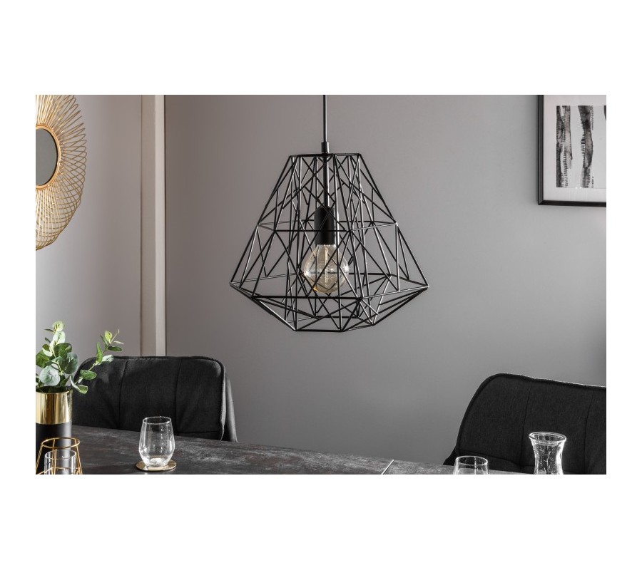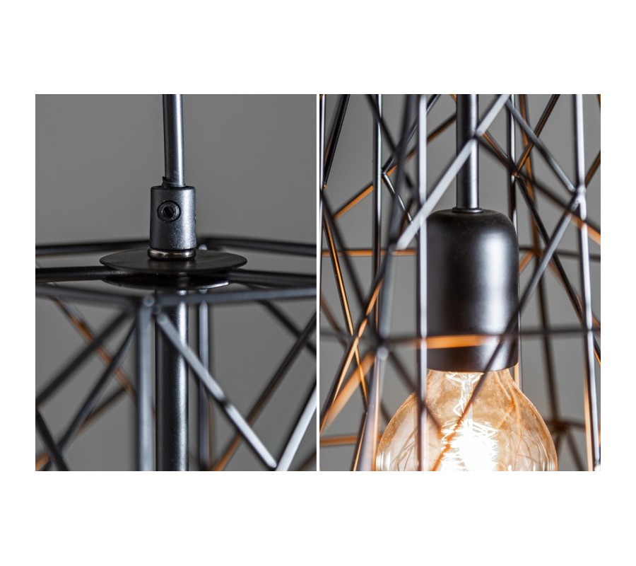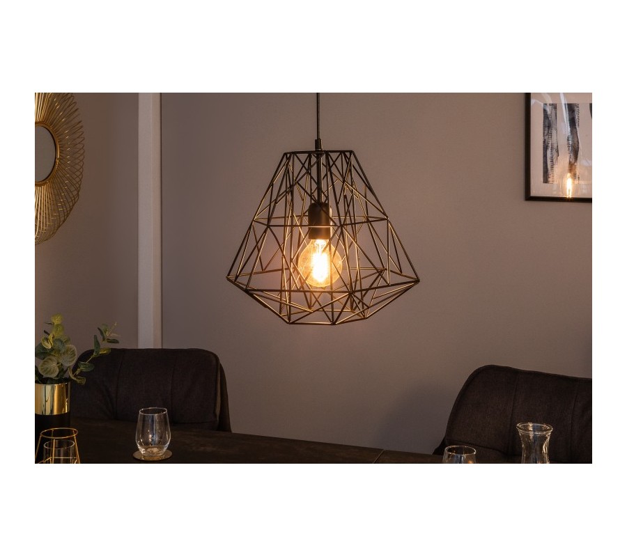 Moderná závesná lampa Mira v čiernom prevedení je skvelým doplnkom pre každého milovníka industriálneho štýlu. Zlatá kovová konštrukcia obkolesujúca žiarovku je impozantným moderným prvkom, ktorý v minimalistickej modernej domácnosti krásne vynikne a rozjasní nejednu miestnosť. Netradičný tvar vás aj vašich návštevníkov určite zaujme. Exkluzívna lampa Mira je prispôsobená žiarovkám s maximálnym výkonom 60W energetických tried A++ až E. Lampu dodávame bez žiarovky.
