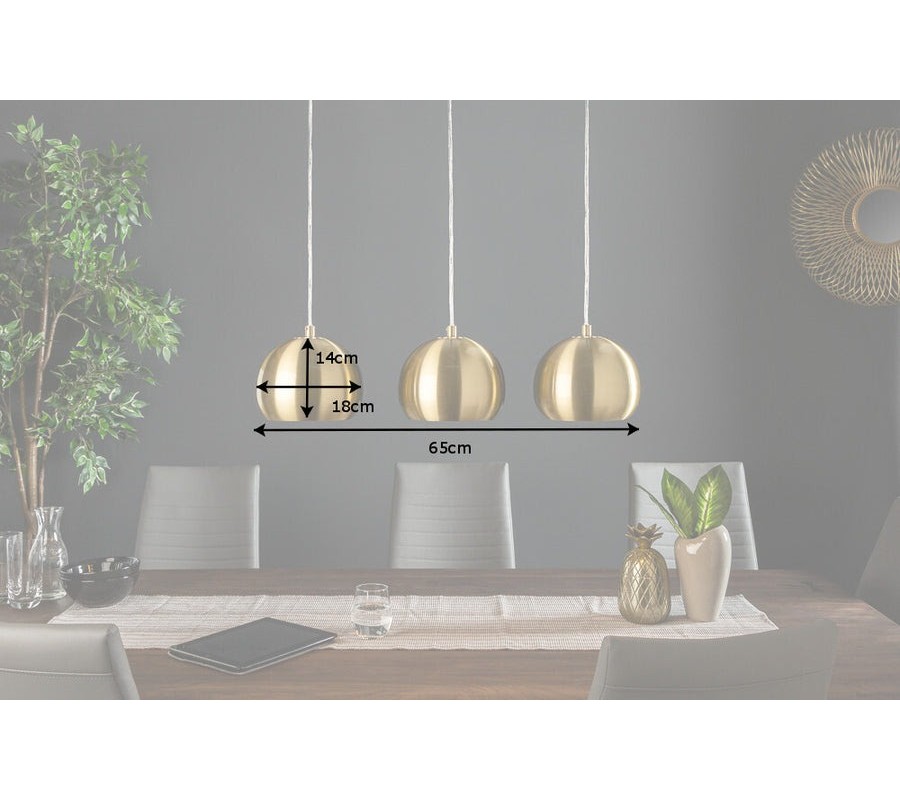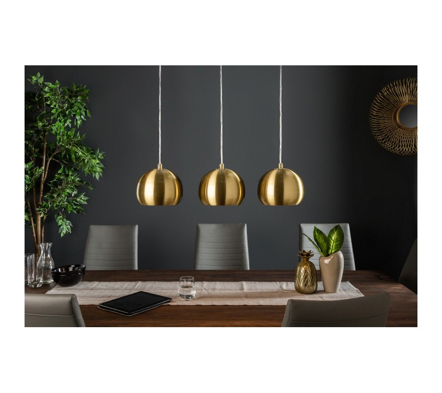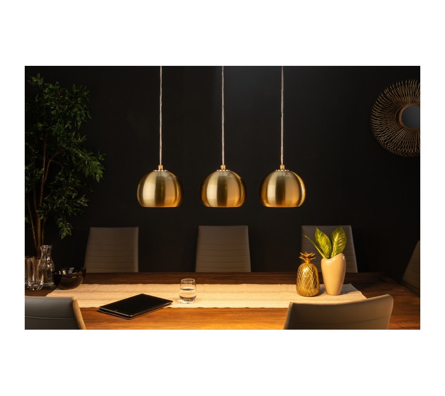 Dizajnová moderná závesná lampa Amaris s obdĺžnikovou krytinou a tromi okrúhlymi tienidlami zlatá 65 cm