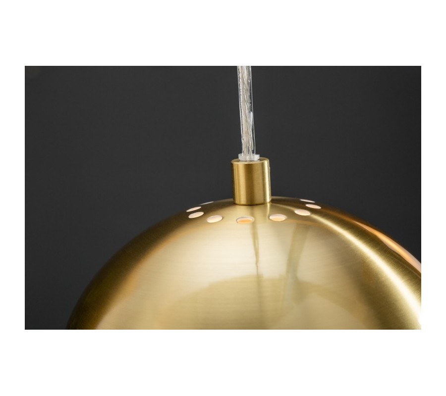 Konštrukcia je vyrobená z kovu s polomatnou brúsenou povrchovou úpravou v zlatom farebnom prevedení, ktorá tlmí odlesky a dodáva povrchu sofistikovaný saténový vzhľad. Perforácia na vrchnej časti tienidiel nielen zlepšuje odvádzanie tepla, ale zároveň vytvára zaujímavý svetelný akcent. Všetky tri svietidlá sú prispôsobené pre žiarovky typu E27 max. 40W, ktoré nie sú súčasťou balenia.