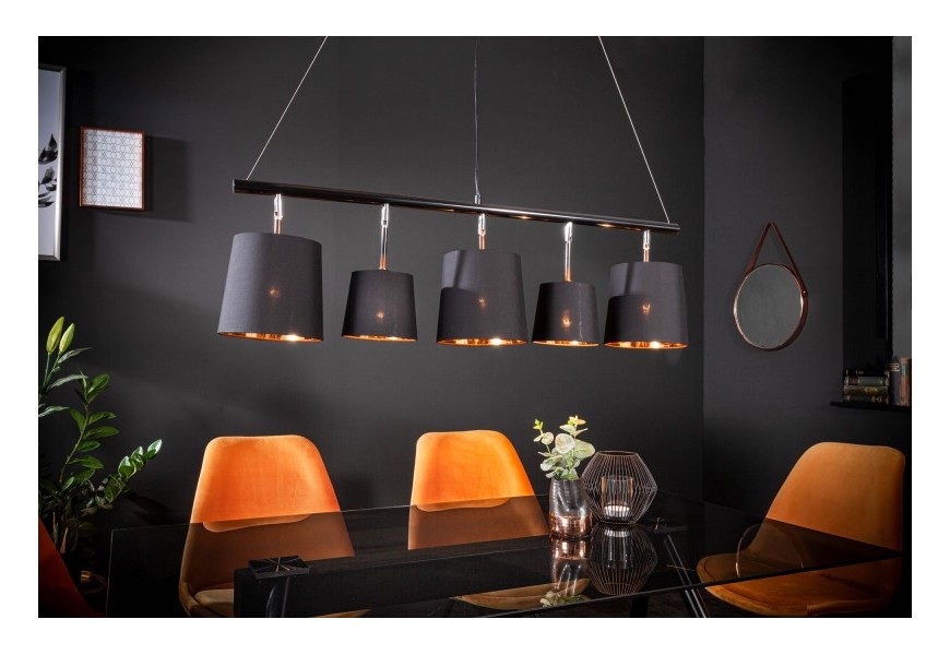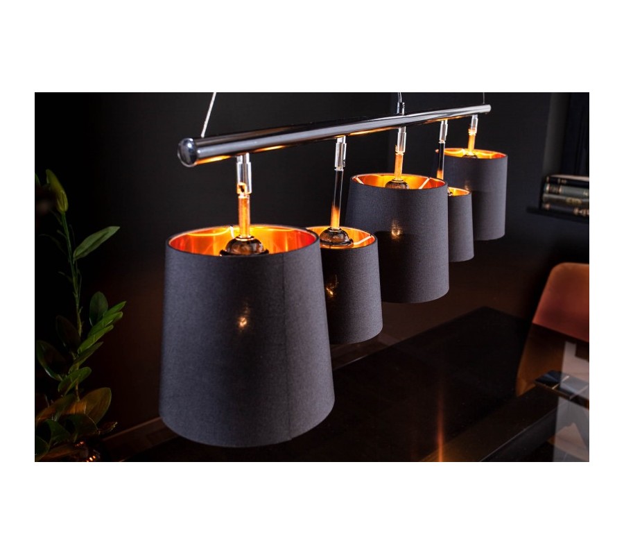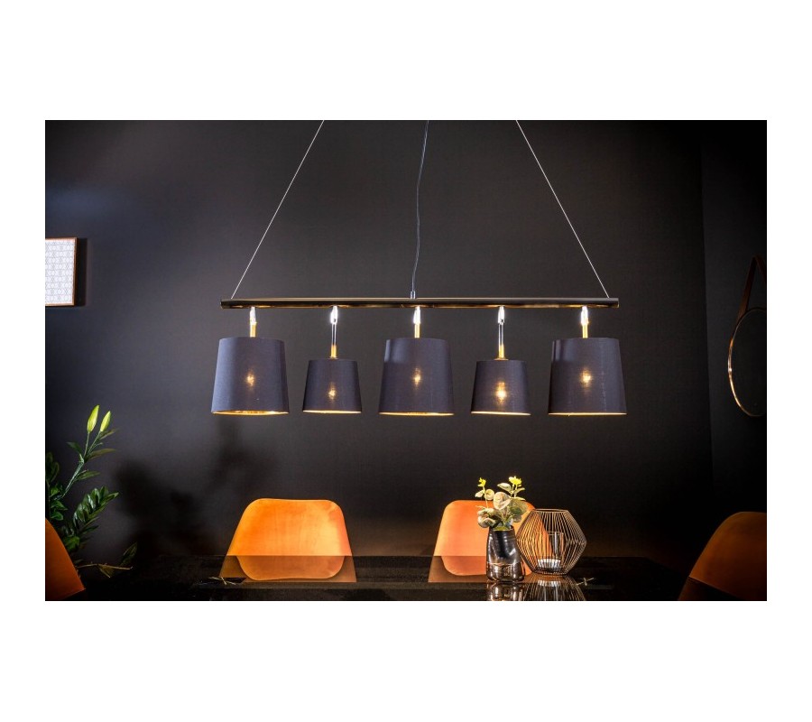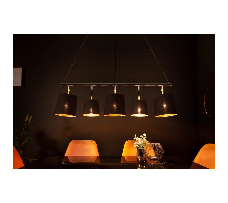 Dizajnové závesné svietidlo so zlato-čiernymi nastaviteľnými tienidlami na striebornej konštrukcii Levels zlatá čierna 104cm
