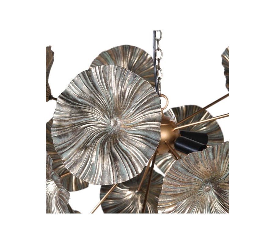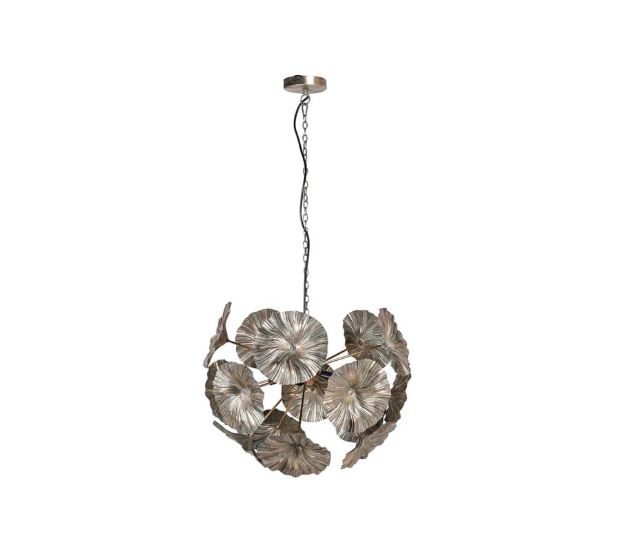 Exkluzívna závesná lampa Ophelis zaujme už na prvý pohľad, a to predovšetkým vďaka svojmu unikátnemu elegantnému dizajnu vo vintage štýle. Konštrukcia lampy je vyhotovená z kovu a nesie sa v zlatej farbe. Povrchová úprava je doplnená o štýlový efekt zostarnutia umocňujúci vintage vzhľad. Konštrukcia pozostáva z jednotlivých kúskov v tvare listov, čo vytvára nádherný florálny efekt. Lampa Ophelis si svoje miesto nájde v obývačkách, spálňach či jedálňach ladených vo vintage, orientálnom i art-deco štýle. Vhodne doplní priestory ladené nábytkom z masívneho dreva a kovu a okrem výborného osvetlenia im dodá elegantný nádych vintage štýlu a elegancie.