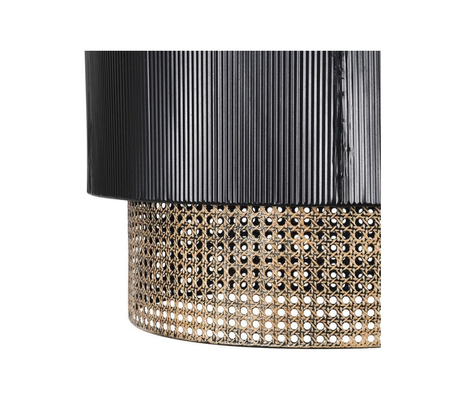 Dizajnová závesná lampa Lucilla predstavuje jedinečné prepojenie moderného a art-deco štýlu. Konštrukcia tohto svietidla je vyrobená z kovu a nesie sa v luxusnej kombinácii čiernej a zlatej farby. Zlatá časť tienidla je zdobená jemným perforovaným vzorom. Vo vašom interiéri vytvorí luxusný moderný nádych. Okrem priestorov obývačiek, jedální či pracovní si svoje miesto nájde aj v luxusných hoteloch, reštauráciách či kaviarňach. Lampa Lucilla sa dá vhodne kombinovať s nábytkom z masívneho dreva či kovu v modernom štýle.