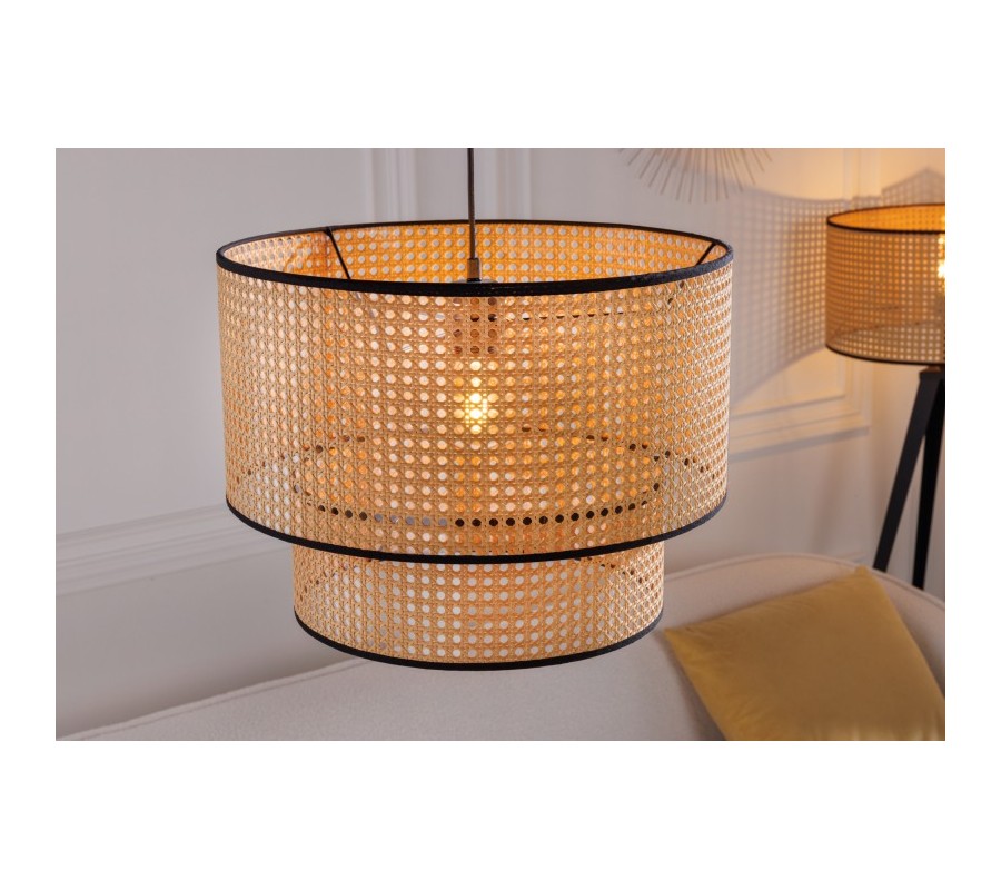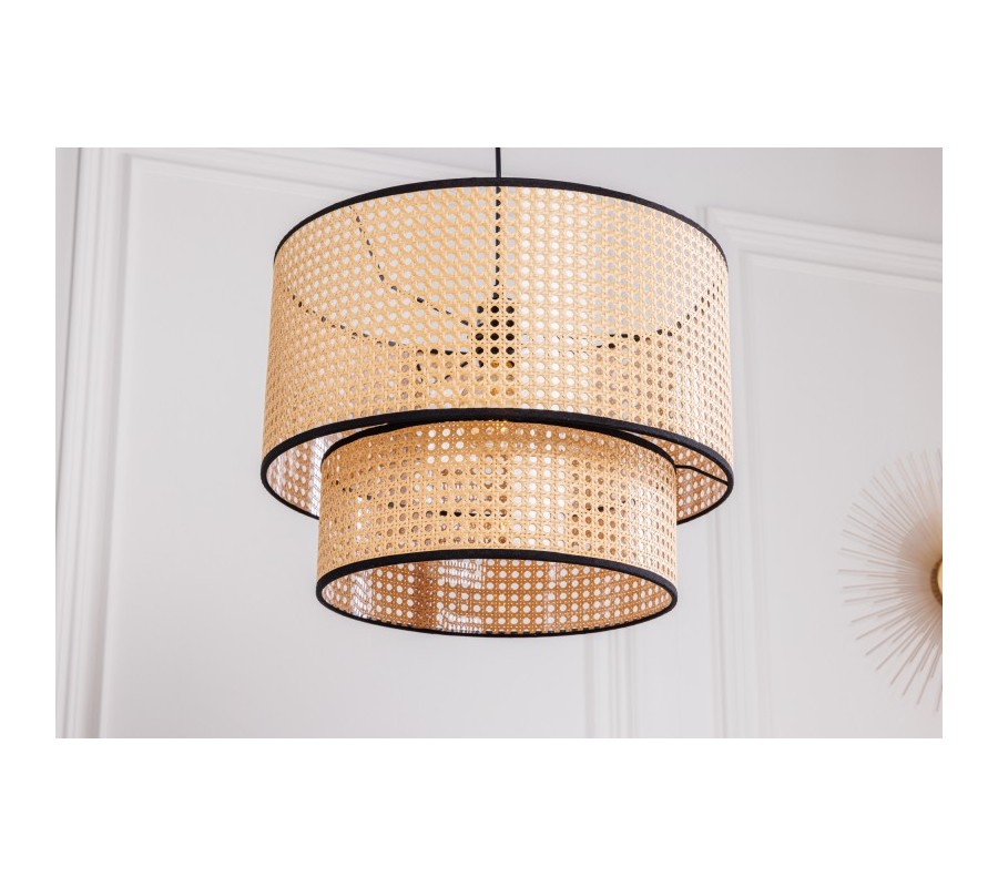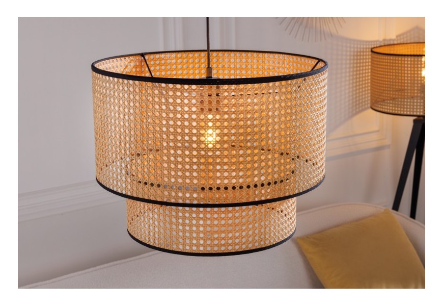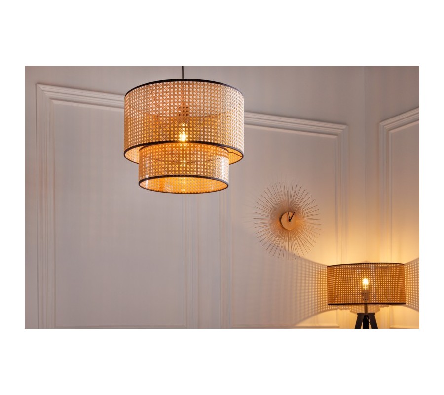 Dizajnová závesná lampa Citadel zaujme vďaka svojmu sviežemu mdoernému prevedeniu. Tienidlo pozostáva z dvoch okrúhlych častí z ratanového materiálu a je vyrobené technikou viedenského výpletu, vďaka čomu dostáva jemný naturálny nádych. Ten umocňuje aj prírodná svetlohnedá farba, ktorú kontrastne dopĺňa čierny rám lemujúci obe časti tienidla. Závesná lampa Citadel vďaka univerzálnej farebnosti vhodne zapadne do svetlejších aj tmavších priestorov. Pre umocnenie moderného nádychu odporúčame umiestnenie v svetlej obývačke, pracovni či jedálni v kombinácii s dreveným nábytkom a doplnkami z prírodných materiálov. Vhodné sú tiež art-deco dekorácia v podobe dizajnových zrkadiel či sošiek. Do lampy sú vhodné žiarovky typu E27 max 60W.