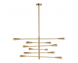 Moderný luster Russel v art deco štýle s kovovou konštrukciou zlatej farby a oválnymi sklenenými tienidlami 58cm