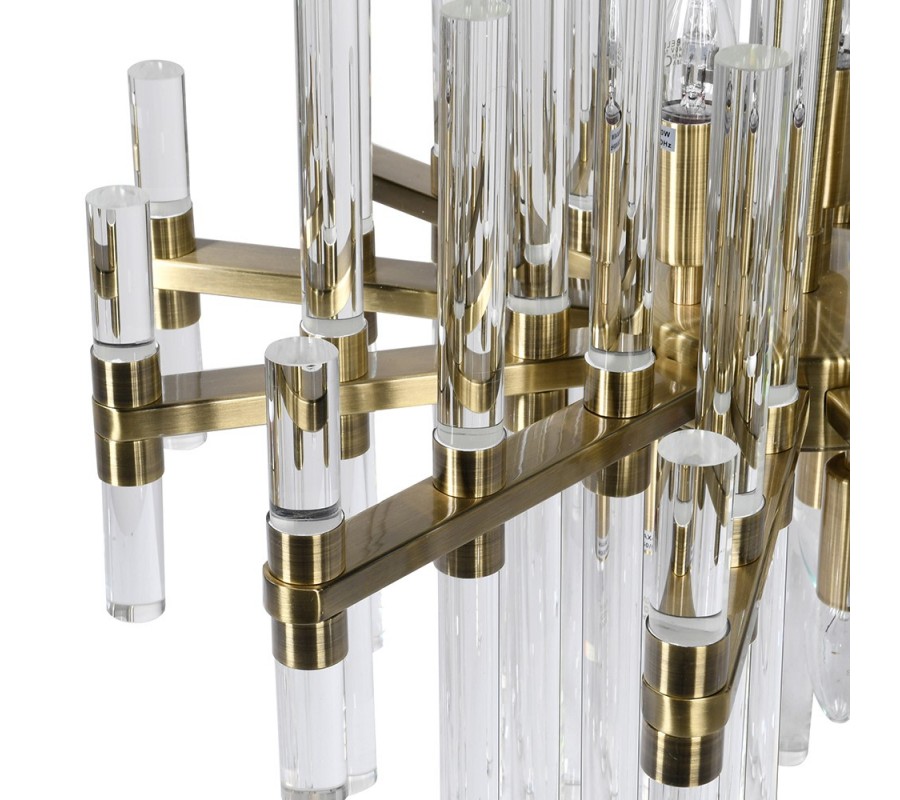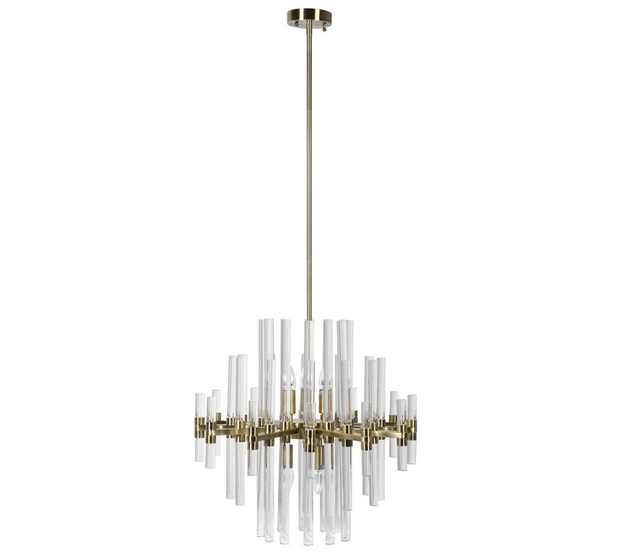 Štýlová závesná lampa Russel predstavuje skvelé riešenie do moderne a art deco ladených priestorov. Toto unikátne svietidlo zaujme predovšetkým svojím elegantným prevedením a inovatívnym dizajnom. Luster pozostáva z kovovej konštrukcie zlatej farby, ktorú dopĺňajú sklenené prvky. Vzniká tak moderný vzhľad, ktorý príjemne doplní súkromné interiéri i reprezentatívne priestory firiem, hotelov či štýlových reštaurácií. Kombináciou so skleneným nábytkom a čalúnenými sedačkami dosiahnete unikátny nádych štýlu art deco, ktorý možno umocniť doplnením zlatých dekorácií, dizajnových nástenných zrkadiel či štýlových koberčekov s dlhým vlasom. Do lampy Russel je potrebných 6 žiaroviek typu E14 max 40W.
