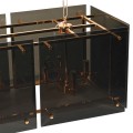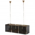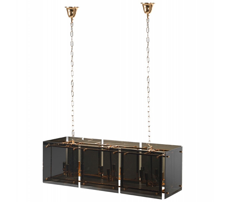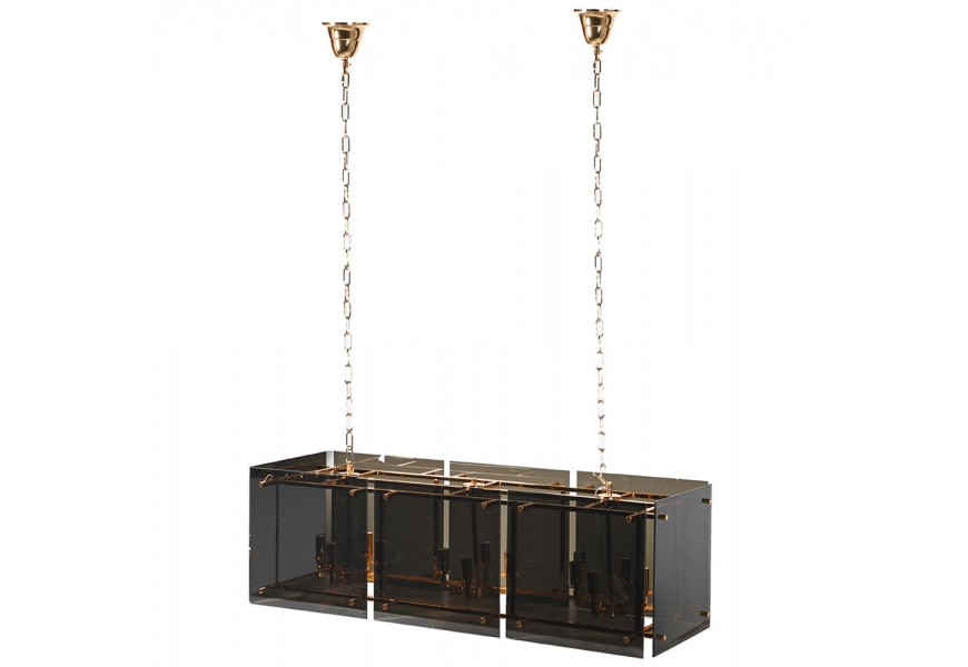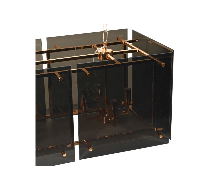 Exkluzívna závesná lampa predstavuje jedinečné prepojenie rustikálneho a art-deco štýlu. Sklíčka sú osadené v kovovej konštrukcii obdĺžnikového tvaru, vďaka čomu lampa nadobúda nadčasový vzhľad. Lampa je vhodná na umiestnenie nad jedálenským či písacím stolom v luxusných jedálňach či pracovniach, rovnako ako aj v priestranných recepciách luxusných hotelov a vstupných hál.