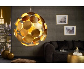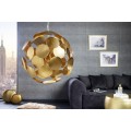 Dizajnová závesná lampa Globe okrúhleho tvaru z kovových plieškov zlatej farby 63cm
