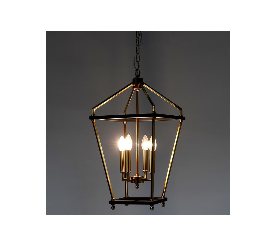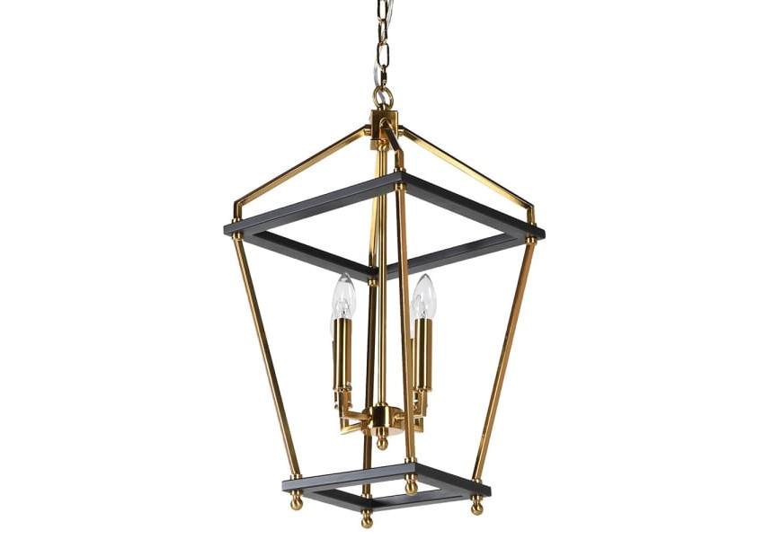 Dizajnová závesná lampa Moreli vkusne doplní priestory art deco či glamour ladených obývačiek, chodieb, jedální či pracovní. Toto štýlové svietidlo sa vyznačuje svojou geometrickou konštrukciou z kovu kombinujúcou čiernu a žiativú zlatú farbu. Štyri žiarovky uprostred otvorenej vzdušnej konštrukcie dodajú vášmu interiéru dostatok svetla. Dizajn inšpirovaný vzhľadom pouličných lámp v minimalistickom, nadčasovom prevedení vkusne doplní aj moderne zariadené priestory. Svojou luxusnou farebnou a materiálovou kombináciou a elegantnými čistými líniami dodá vašim priestorom sofistikovaný nádych, pričom zaručí výborné osvetlenie a spĺňa tak estetickú i praktickú funkciu. Luster Moreli odporúčame kombinovať s art deco ladeným nábytkom z kovu so zlatými akcentami, ale i kontrastnými výraznými farbami.