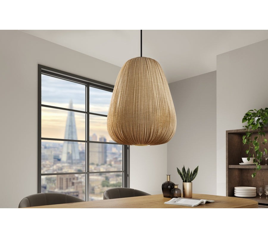 Závesná lampa Mistia výborne doplní interiéry zariadené v svetlých zemitých farbách. Môžete ju umiestniť nad jedálenský stôl z masívneho dreva v etno štýle, či do modernej obývačky nad konferenčný stolík so zlatými detailmi.