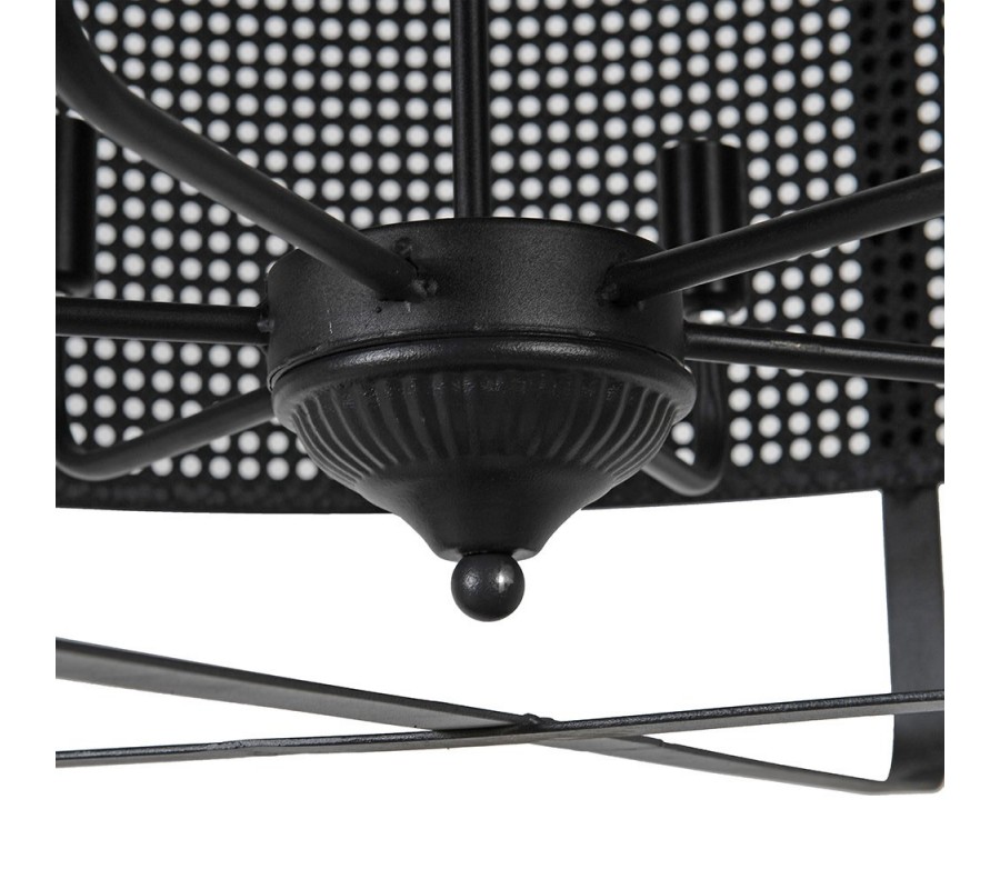 Lampa je zavesená na pevnej kovovej reťazi s dĺžkou 60 cm, ktorá plynulo prechádza do ozdobného stropného zakončenia okrúhleho tvaru v čiernej farbe. Svietidlo je prispôsobené pre žiarovky typu E14 a maximálny príkon 40 wattov.