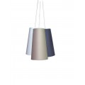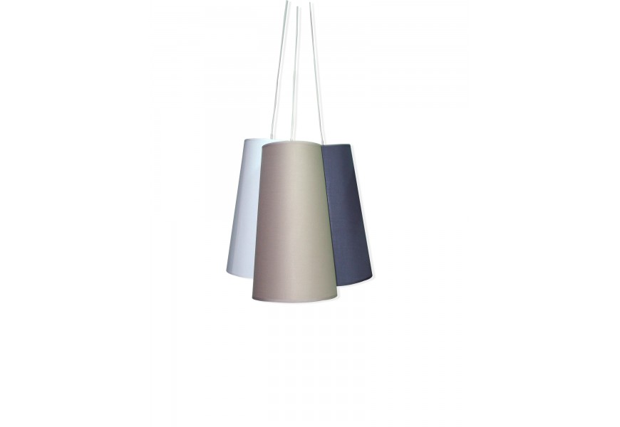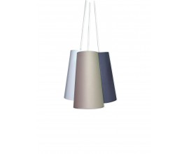 Dizajnová moderná trojitá závesná lampa Treicolor v sivej a modrej fabre v kužeľovom tvare z textilu 40 cm