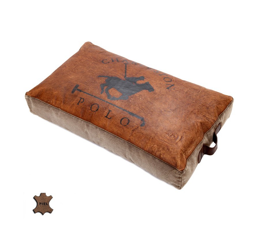 Kožený vankúš pre sedenie na zemi s čiernym obrázkom hráča pola.