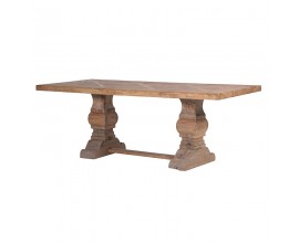 Luxusný vintage obdĺžnikový jedálenský stôl Carence v naturálnej hnedej farbe s parketovým dizajnom a vyrezávanými nohami 220 cm