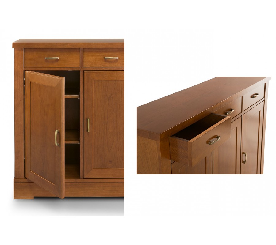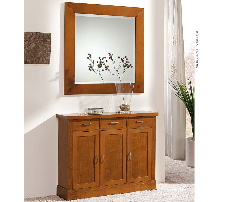 Ak ste milovníkom moderných alebo rustikálne ladených interiérov, táto komoda z kolekcie Carmen Vás určite zaujme. Je vyrobená z masívneho dreva hnedej farby a jej vzhľad je podčiarknutý povrchovou úpravou zvýrazňujúcou prirodzenú štruktúru dreva. Poteší Vás aj množstvo úložného priestoru v podobe vnútorných poličiek a troch zásuviek vo vrchnej časti. Celkový vzhľad je dotvorený kovovými úchytkami zlatej farby. Vďaka svojmu dizajnu rovnomerných línií sa táto komoda hodí rovnako do rustikálnych ako aj do moderne zariadených interiérov. Komodu Carmen je možné vyrobiť v dvoch variantoch dreva - orech, čerešňa. Tento elegantný kúsok nábytku z kolekcie Carmen je možné využiť aj ako príborník do rustikálnej jedálne, alebo ako botník do chodby. Odporúčame ho kombinovať so zrkadlom rovnakej kolekcie a kovovými a sklenými doplnkami a dekoráciami.