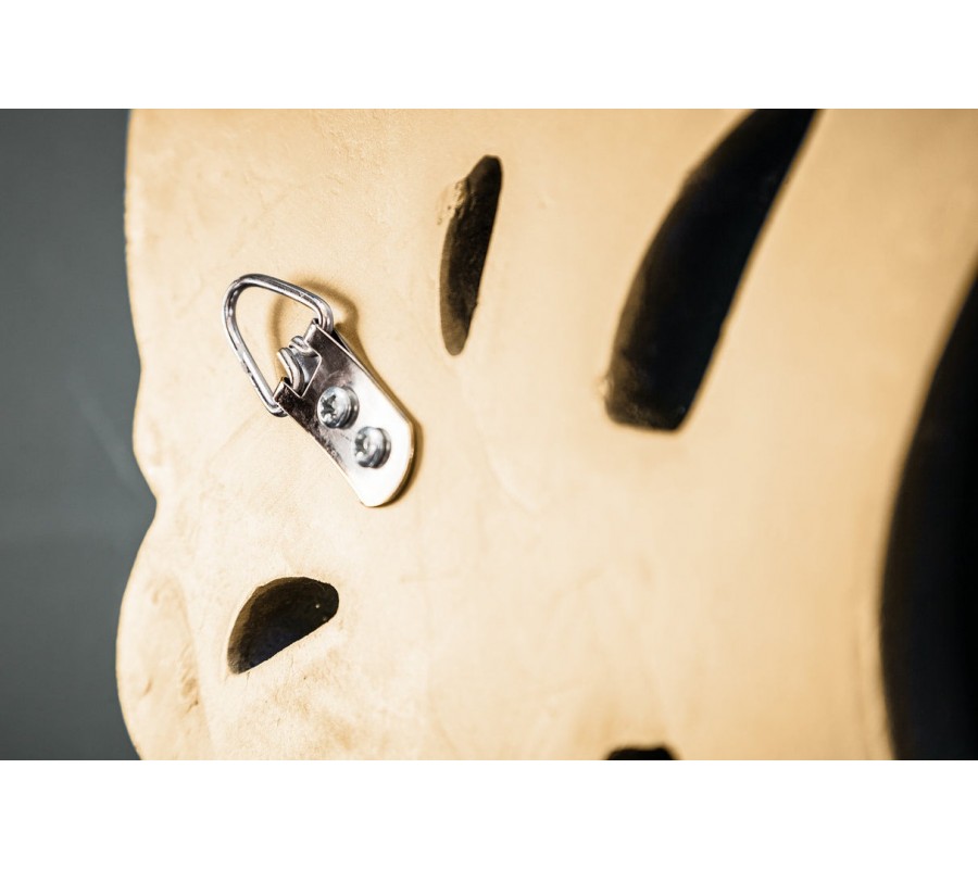 Zrkadlová plocha má jemne vypuklý tvar a mierne zaoblené hrany, čo umocňuje pocit elegancie a výnimočnosti. Ornamenty po obvode rámu tvoria symetrickú kompozíciu s listovými motívmi, prepletanými líniami a reliéfnymi krivkami, ktoré vnášajú do priestoru historický šarm.