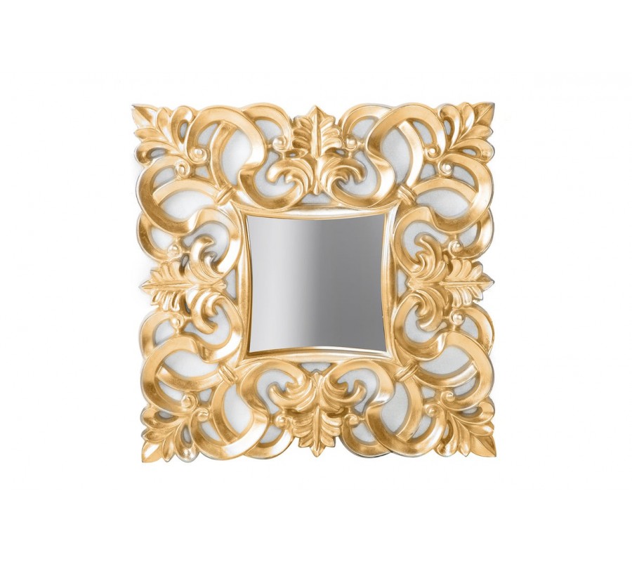 Štýlové antické štvorcové nástenné závesné zrkadlo Venice so zlatým ornamentálnym rámom 75 cm
