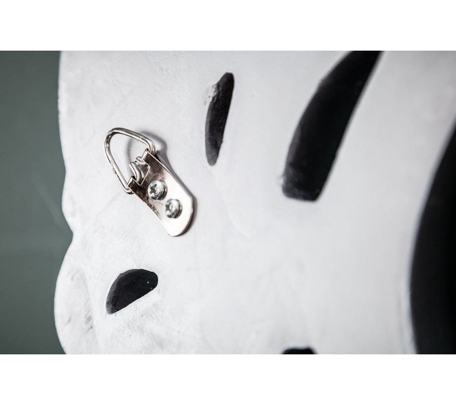 Rám je zhotovený zo živice, ktorá umožňuje precízne spracovanie plastických detailov a zároveň zaručuje ľahkú manipuláciu. Je pokrytý lesklou striebornou povrchovou úpravou, ktorá pri dopade svetla vytvára elegantné odlesky a dodáva priestoru pocit luxusu.