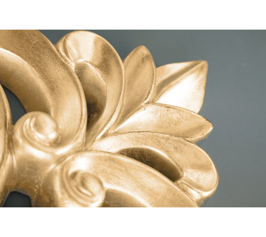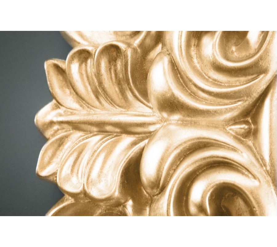 Rám je vyrobený zo živice, čo umožnilo vytvoriť detailné plastické vzory s vysokou presnosťou a hĺbkou a zrkadlo je vďaka tomu ľahké, čo je ideálne pre zavesenie na stenu. Zlatý lesklý povrch zrkadlu dodáva exkluzívny vzhľad a v kombinácii s ozdobným reliéfom vytvára efekt starožitnosti s moderným nádychom.