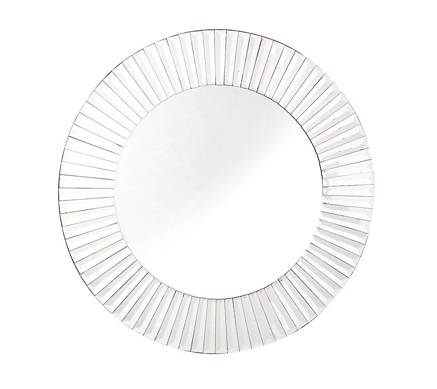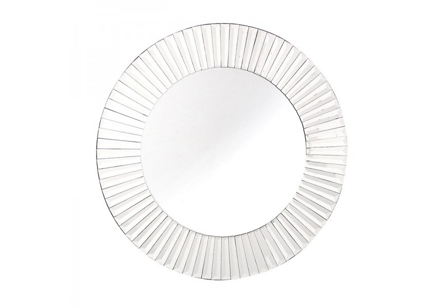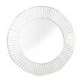 Široký rám má okrúhlu siluetu a jeho lesklé chrómové prevedenie korešponduje s hladkým zrkadlovým centrom. Rám má plisovaný dizajn a jeho povrch pripomína harmoniku. Trojuholníkové tvary vytvárajú veľké množstvo dlhých úzkych plôch, ktoré odrážajú svetlo v rôznych uhloch a pomôžu vám tak priestor presvetliť.