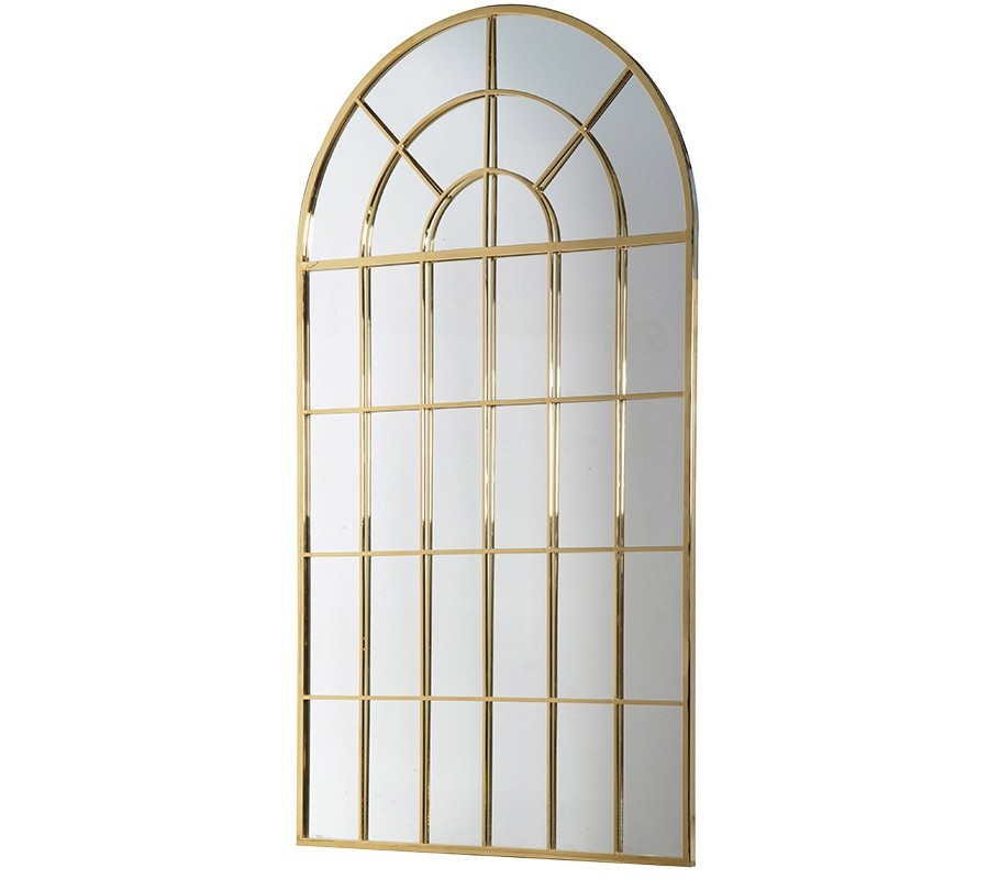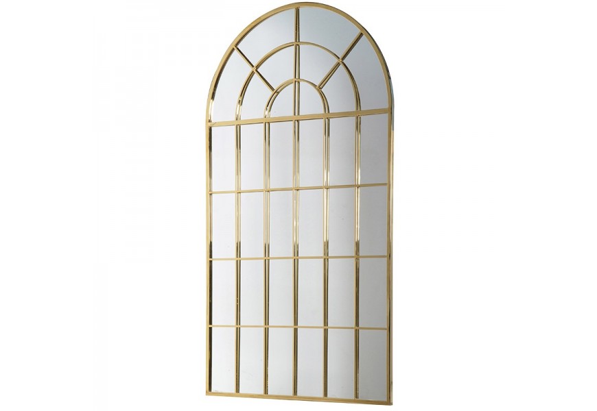 Luxusné glamour zrkadlo Victoria s oblúkovou vrchnou časťou a rámom v zlatej farbe s dizajnom tabuľového okna 192 cm
