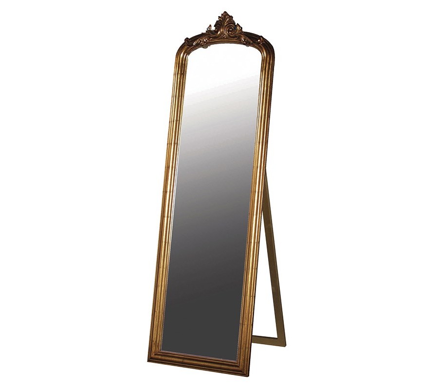 Vintage stojace zrkadlo Blaca z dreva v zlatej farbe s dekoratívnym rámom 180cm