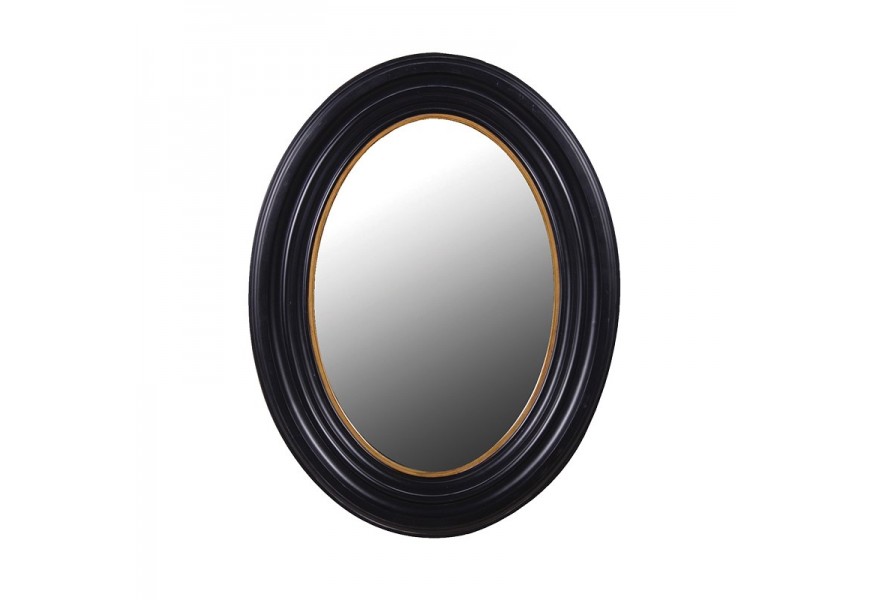 Dizajnové oválne zrkadlo Lazia v retro štýle s dreveným rámom čierno-zlaté 87cm