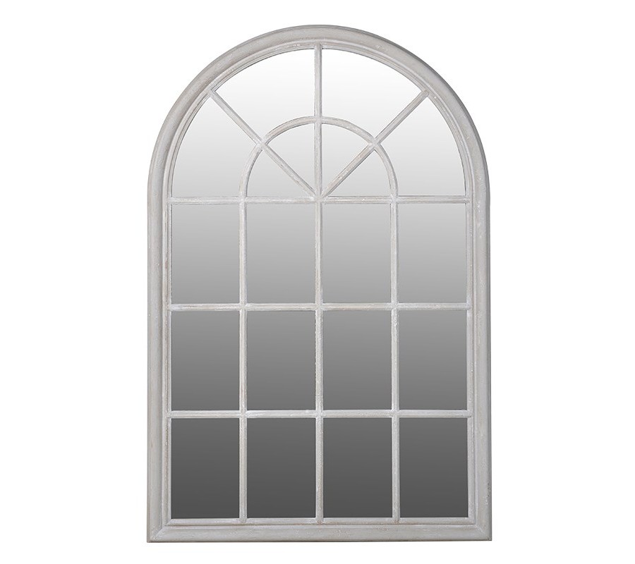 Štýlové nástenné zrkadlo Ursula zaujme predovšetkým vďaka svojmu poloblúkovitému tvaru a rámu pripomínajúcemu vzhľad rustikálnych okien. K tomuto dojmu prispieva tiež vnútorné členenie zrkadlovej plochy. Tento špecifický dizajn do vašich priestorov vnesie nádych klasického a provensálskeho štýlu a vo vašej miestnosti dotvorí unikátny starožitný vzhľad. Zrkadlo vhodne doplní predovšetkým kontrastné steny obývačiek, spální či chodieb, kde bude mať dostatočný priestor a môže pôsobiť ako dominantný prvok. Rám v svetlej sivohnedej farbe je vyrobený z dreva paulownia, ktoré sa vyznačuje svojou ľahkosťou, pevnosťou a odolnosťou. Zrkadlu tiež dodáva príjemný naturálny nádych, ktorý dopomôže vo vašich priestoroch vytvoriť skutočne útulný pocit domova. Zrkadlo Ursula výborne poslúži aj na optické zväčšenie vašich priestorov a vnesie k vám unikátny nádych rustikálneho štýlu!