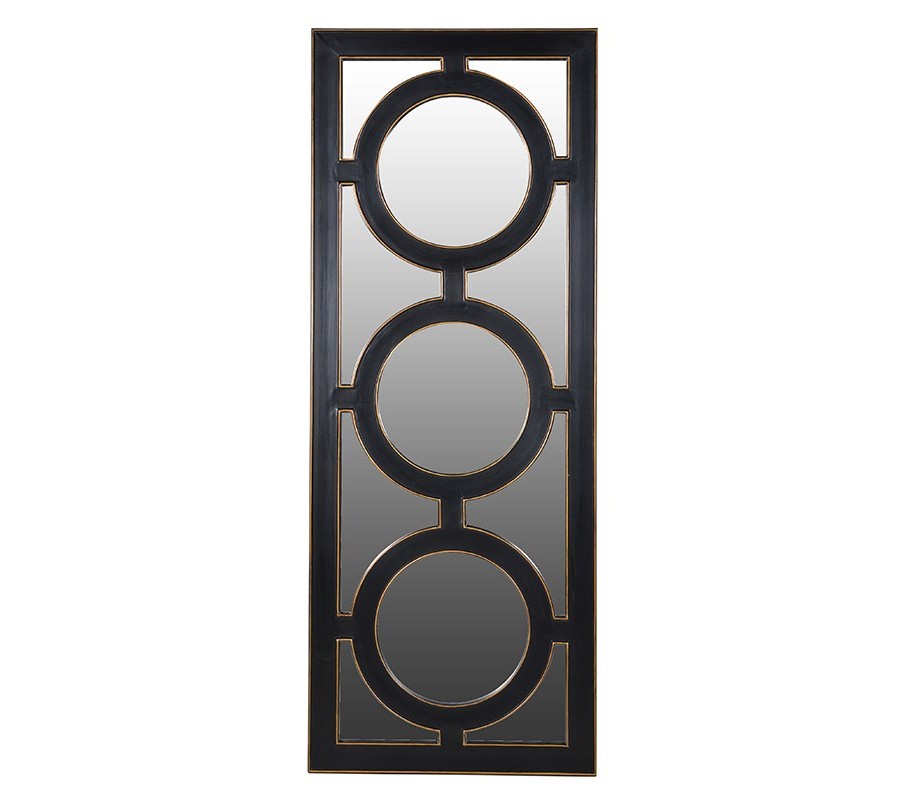 Art deco dizajnové nástenné zrkadlo Mirana s čiernym dreveným rámom s kruhovým zdobením a zlatým lemom 160cm